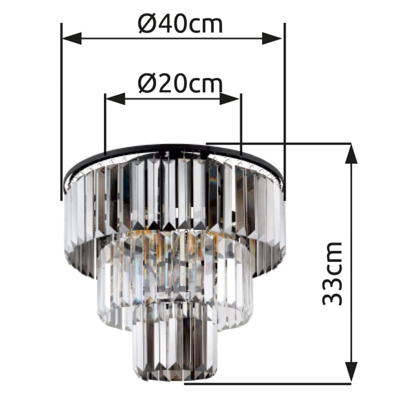 Laelamp NAXIS-GL-15695D, GLOBO, Austria, 3 pirni E27 40W, Diameeter 40 cm, Kõrgus 33 cm, IP20, Metall, Klaas, Must, Suitsu, Läbipaistev