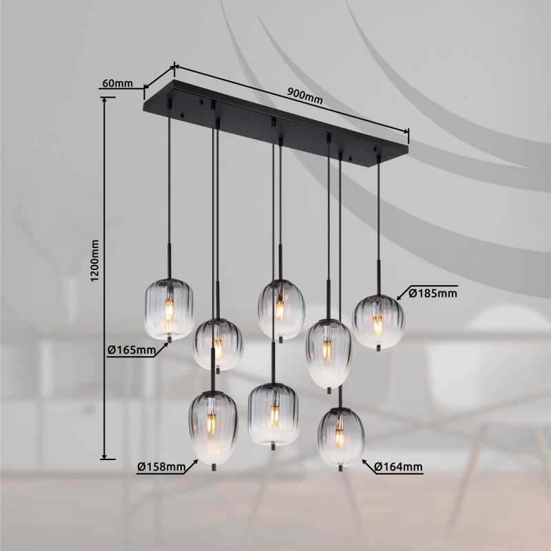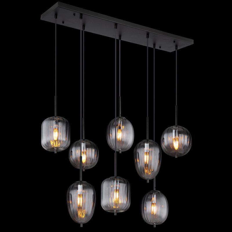 Ripplamp, rippvalgusti Attila-GL-15215-8, GLOBO, Austria, 8 pirni E14 40W, Kõrgus 120cm, Laius 90cm, Variu diameeter 16.4cm IP20, Metall, Must, Suitsuklaas.