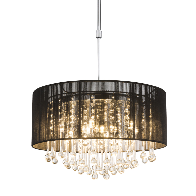 Ripplamp, rippvalgusti BAGANA 15095H, Globo Austria. 12 pirni G9 3W, komplekt ei sisalda pirni, Materijal – Metall, Klaaskristallid, Siid. Kroom, Must. Kõrgus 50 – 120cm, Diameeter 50 cm. IP20