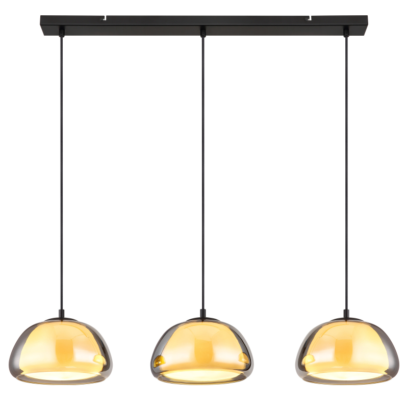 Ripplamp, rippvalgusti Jella 15743-3H, GLOBO, Austria, 3 pirni E14 40W, Kõrgus 120 cm, Diameeter 50cm, laius 95cm. IP20, Metall, Must, Suitsuklaas. IP20. Tarneaeg 14-21 päeva.