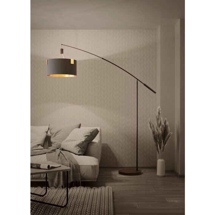 Põrandavalgusti TORTOLA 1-EG-39966, 3 pirni E27 40W, komplekt ei sisalda pirni, Metall, Kangas, Must, Messing, Must, Messing, Kõrgus 203 cm, Pikkus 183 cm, Laius 45 cm; IP20