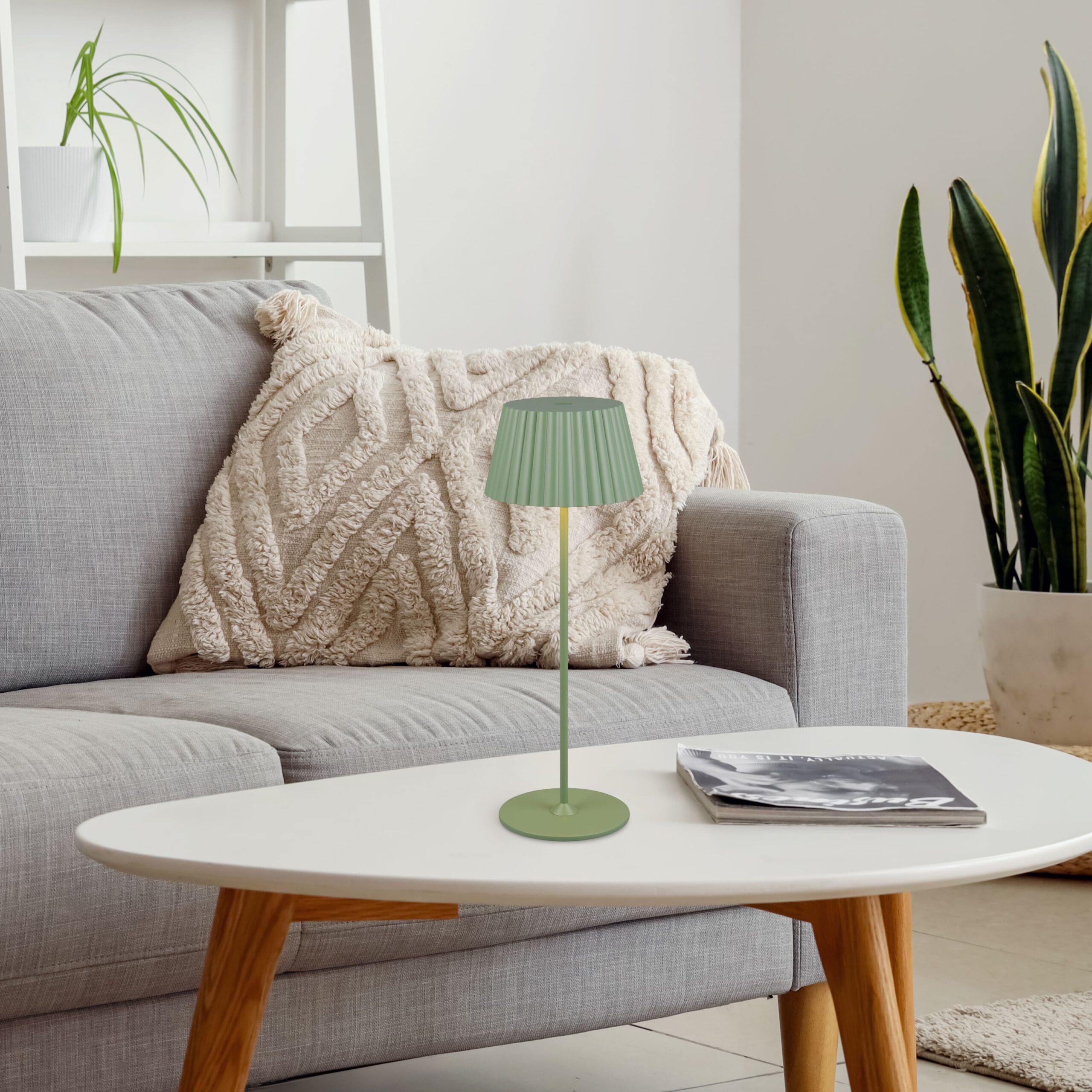 Laualamp SUAREZ-TRL- R57706149, 1x SMD, 1,5W · 1x 200lm, 3000K, Metall, Roheline, Kõrgus 39 cm, Diameeter 13 cm, IP44, Anduri dimmer, USB ühendus, Töötab laetava akuga, Trio, Tarneaeg kuni 21 päeva