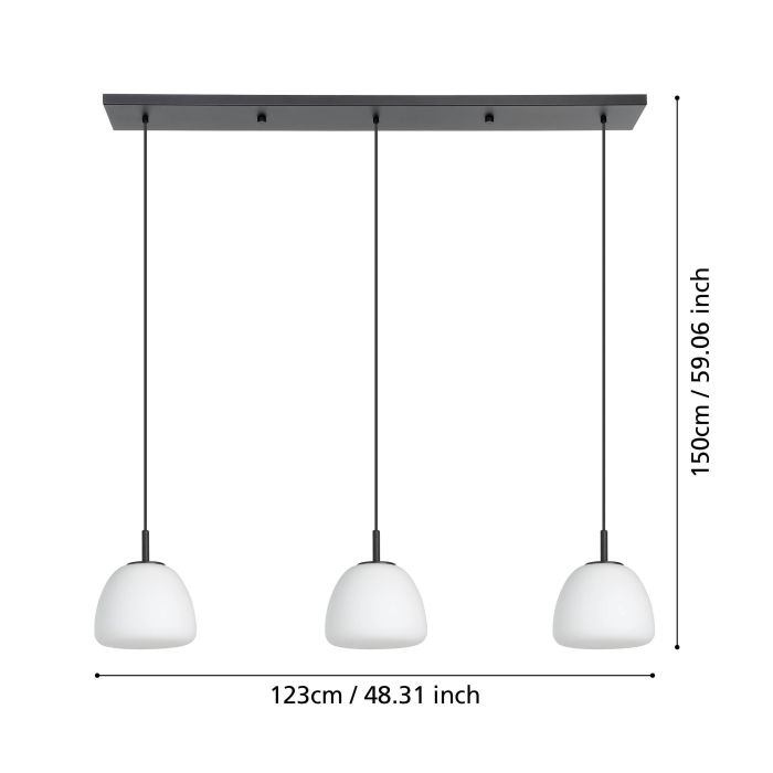 Rippvalgusti BALMES-EG-390202, 3 pirni E27 40W, komplekt ei sisalda pirni, Metall, Klaas, Must, Valge, Kõrgus 150 cm, Pikkus 123 cm, Laius 22 cm; IP20