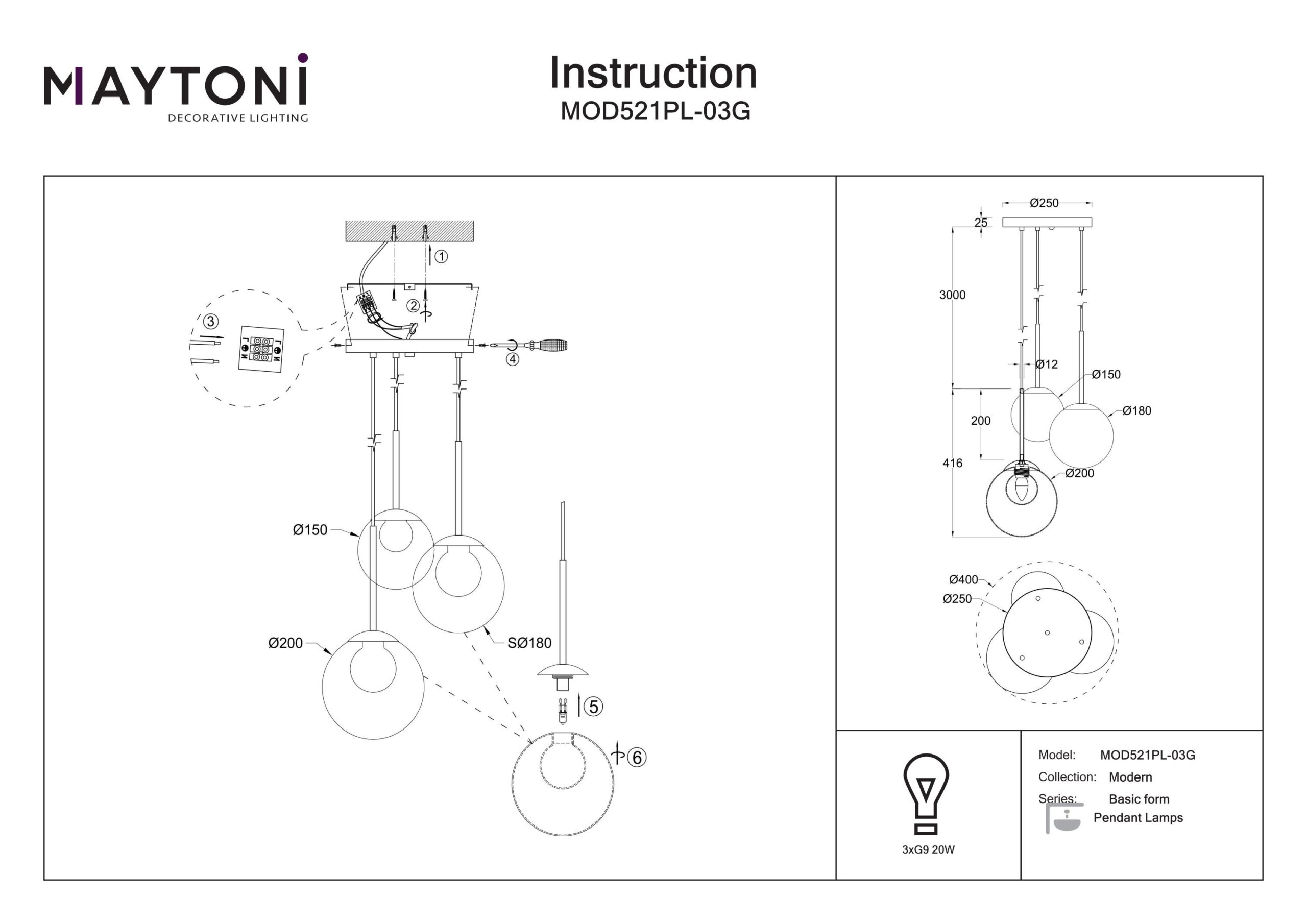 3*G9, max 20W, ei ole komplektis |