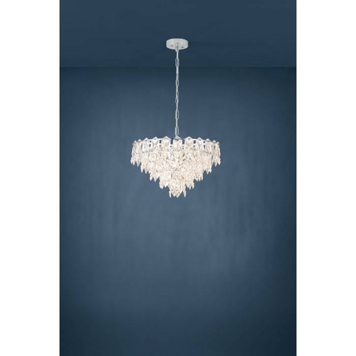 Rippvalgusti CARVARIO-EG-39724, 10 pirni E14 40W, komplekt ei sisalda pirni, Metall, Klaas, Kroom, Läbipaistev, Kõrgus 110 cm, Diameeter 60 cm IP20