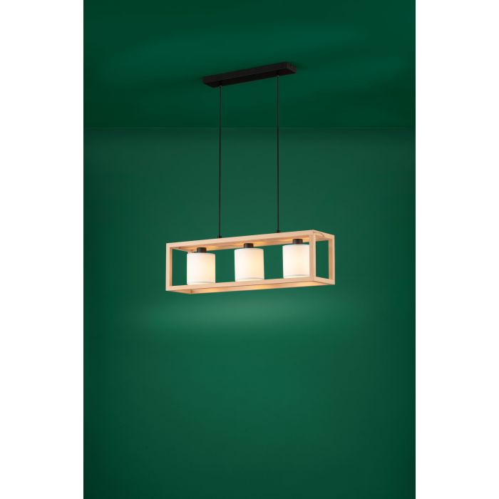 Rippvalgusti GRANADOS-EG-390101, 3 pirni E27 25W, komplekt ei sisalda pirni, Metall, Puit, Kangas, Pruun, Must, Valge, Kõrgus 150 cm, Pikkus 77 cm, Laius 20 cm; IP20