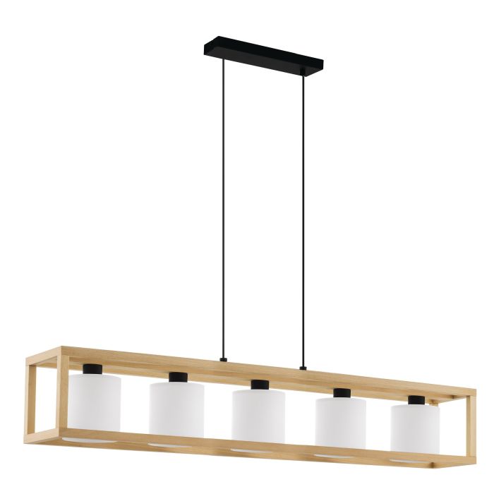 Rippvalgusti GRANADOS-EG-390102, 5 pirni E27 25W, komplekt ei sisalda pirni, Metall, Puit, Kangas, Pruun, Must, Valge, Kõrgus 150 cm, Pikkus 100 cm, Laius 20 cm; IP20