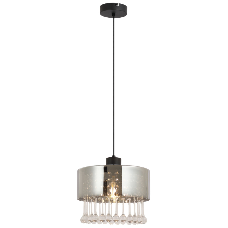 Ripplamp Hendry-GL-15884H1 1 pirn E27 15W komplekt ei sisalda pirni; Metall, Klaas, Must, Suitsuklaas, IP20, Kõrgus 120cm, Diameter 25cm