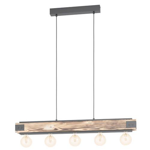 Rippvalgusti LAYHAM-EG-43468, 5 pirni E27 60W, komplekt ei sisalda pirni, Metall, Puit, Pruun, Must, Kõrgus 110 cm, Pikkus 96 cm, Laius 8,5 cm; IP20