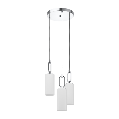 Rippvalgusti MAJANA-EG-390128, 3 pirni E27 40W, komplekt ei sisalda pirni, Metall, Klaas, Kroom, Valge, Kõrgus 150 cm, Diameeter 37 cm IP20