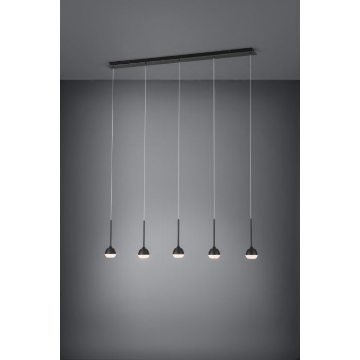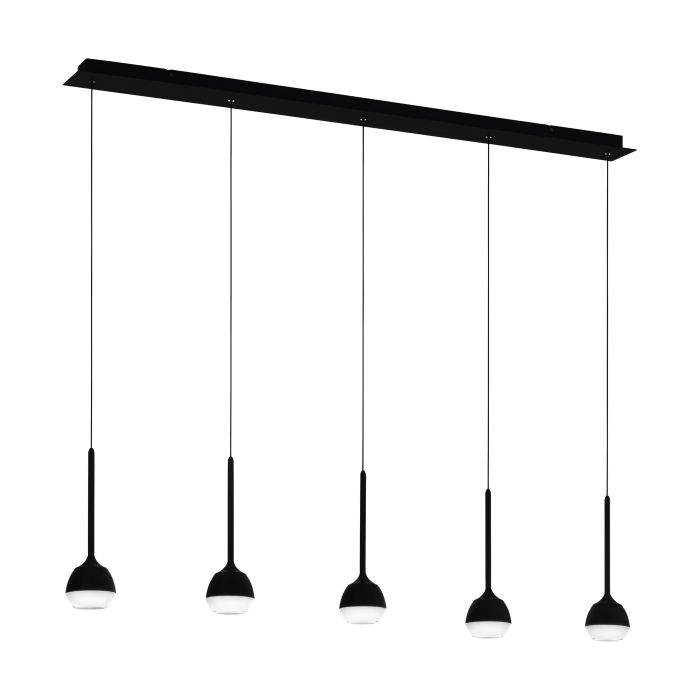 Rippvalgusti NUCETTO-EG-39712, LED 5 x 4,5W, 3000K Valgusvoog: 2750lm, Metall, Klaas, Must, Läbipaistev, Kõrgus 150 cm, Pikkus 117 cm, Laius 10 cm; Hämardatav; IP20