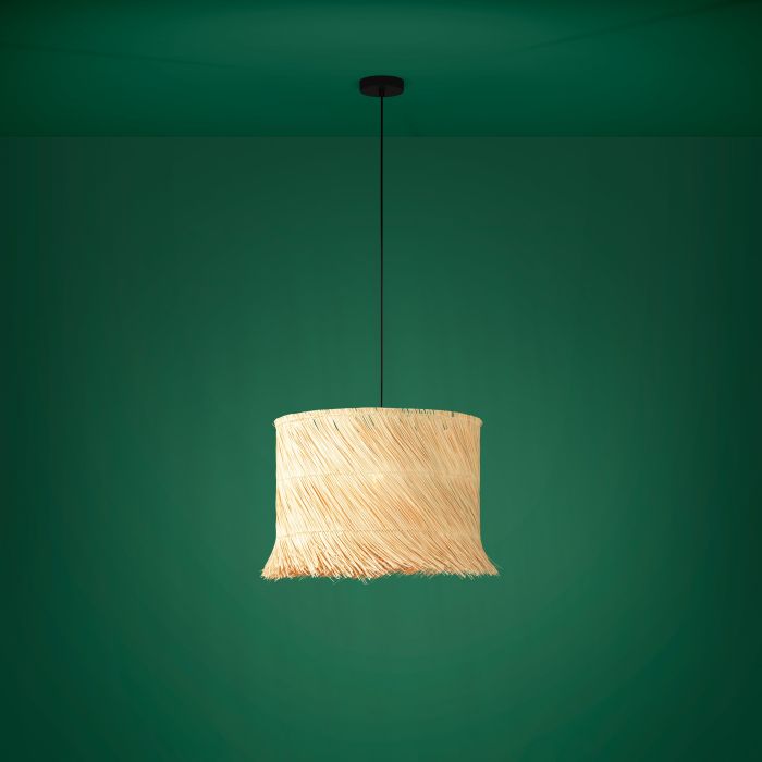 Rippvalgusti PAISANO-EG-390238, 1 pirn E27 40W, komplekt ei sisalda pirni, Metall, Rotangist, Must, Loomulik, Kõrgus 150 cm, Diameeter 48 cm IP20