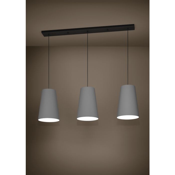 Rippvalgusti PETROSA-EG-390136, 3 pirni E27 40W, komplekt ei sisalda pirni, Metall, Kangas, Must, Hall, Valge, Kõrgus 150 cm, Pikkus 129 cm, Laius 28 cm; IP20