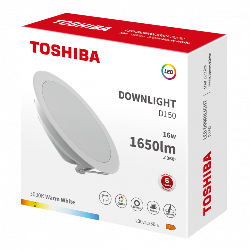 LED Kohtvalgusti, LED süvisvalgusti DELS-DL3401661A051, TOSHIBA, LED 16W, 3000K, 1650 lm, Diameter 16,5 cm, Väljalõikeava läbimõõt 14,5 cm, Nõutav sügavus 4,7 cm