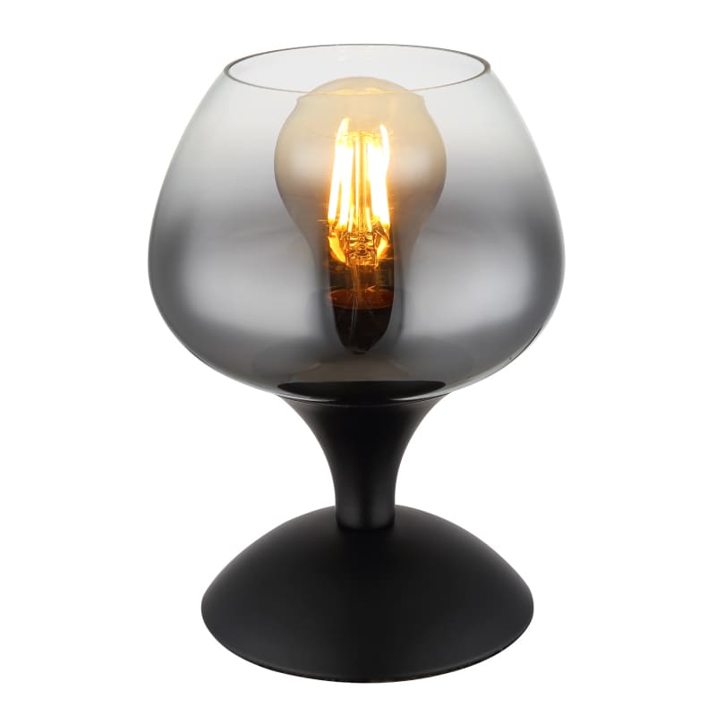 Laualamp MAXY-GL-15548T2, GLOBO, Austria, 1 pirn E27 40W, Diameeter 15cm, Kõrgus 20,5cm, IP20, Metall, Klaas, Must, Suitsu