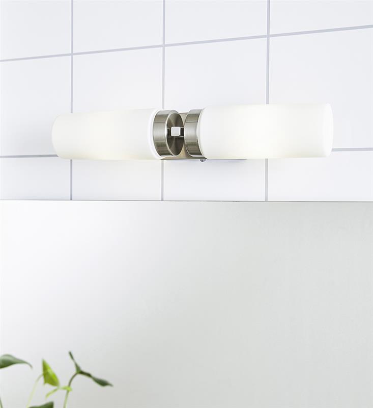Seinavalgusti STELLA-MS-234841,450712, 2 pirni E14 40W, komplekt ei sisalda pirni, Metall, Klaas, Teras, Valge, Kõrgus 6,5 cm, Laius 35,5 cm, Sügavus 10 cm, IP44