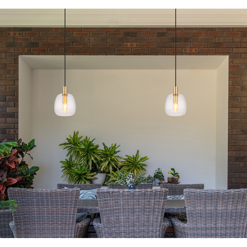 Ripplamp Garri-GL-15789HM 1 pirn E14 40W komplekt ei sisalda pirni; Metall, Klaas, Messing, Läbipaistev, IP20, Kõrgus 120cm, Diameter 16cm