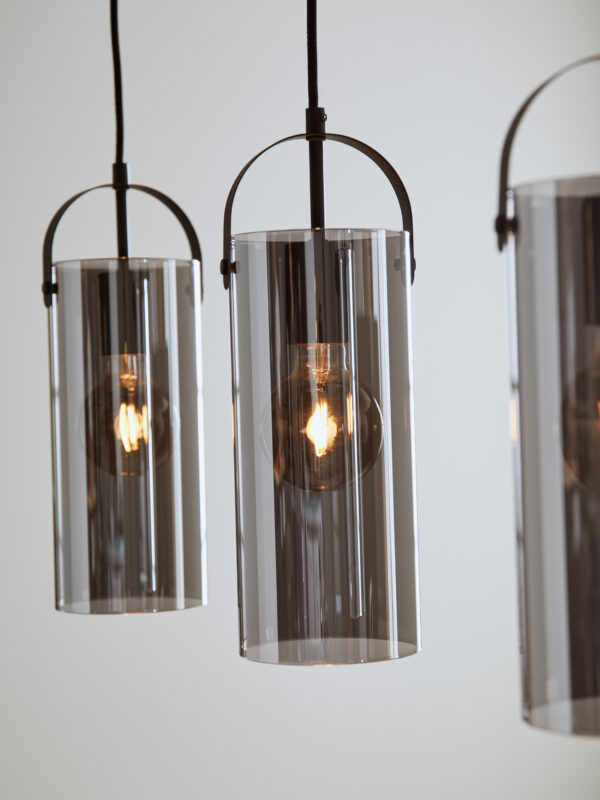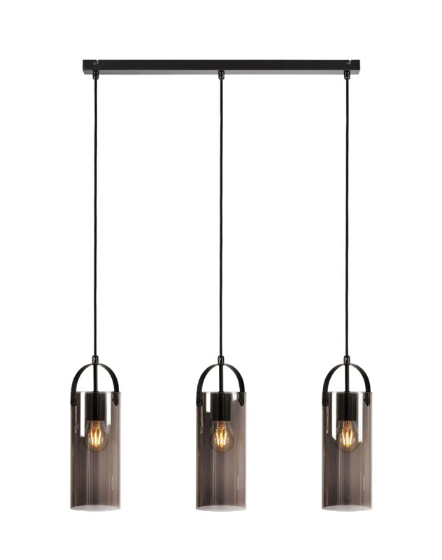 Ripplamp GLORY-MS-108219, 3 pirni E27 15W, komplekt ei sisalda pirni, Metall, Klaas, Must, Suitsuklaas, Kõrgus 35 cm, Laius 74 cm, Sügavus 12 cm, IP20. Tarneaeg kuni 21 pv.