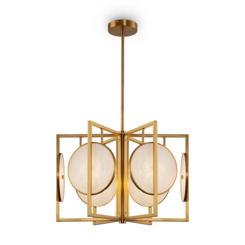 Rippvalgusti, ripplamp Marmo MOD099PL-06G, Maytoni. Sarja ristkülikukujulised jooned ja ümarad elemendid loovad harmoonilise kompositsiooni väljendunud konstruktivismi nootidega. Kullavärvi tsingitud metallist liitmikud lisavad diskreetsele disainile luksuslikku kõla. Lambi peamiseks aktsendielemendiks ja esiletõstmiseks on ainulaadse tekstuurimustriga looduslikust kivist dekoratiivplaadid. Sarja kuuluvad laelühtrid 3 ja 6 pirnile (E14), samuti pindpaigaldatavad lambid 1 pirnile. Kasutage rippvalgusteid, et luua interjööri terviklik ja terviklik pilt, mis on kaunistatud sajandi keskpaiga modernse, kaasaegse, neoklassikalise, konstruktivismi stiilis. Materjalid: klaas, metall. Värvus: kuldne. 6*E14, max 40W, komplekt ei sisalda pirni. Diameter– 52 cm; kõrgus: 79 cm.