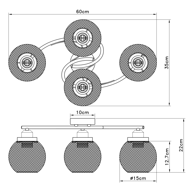 Laelamp PABLO 15663-4D, Globo, 4 pirni E27 40W komplekt ei sisalda pirni Kõrgus 22 cm, Pikkus 60 cm, Metall. Must matt