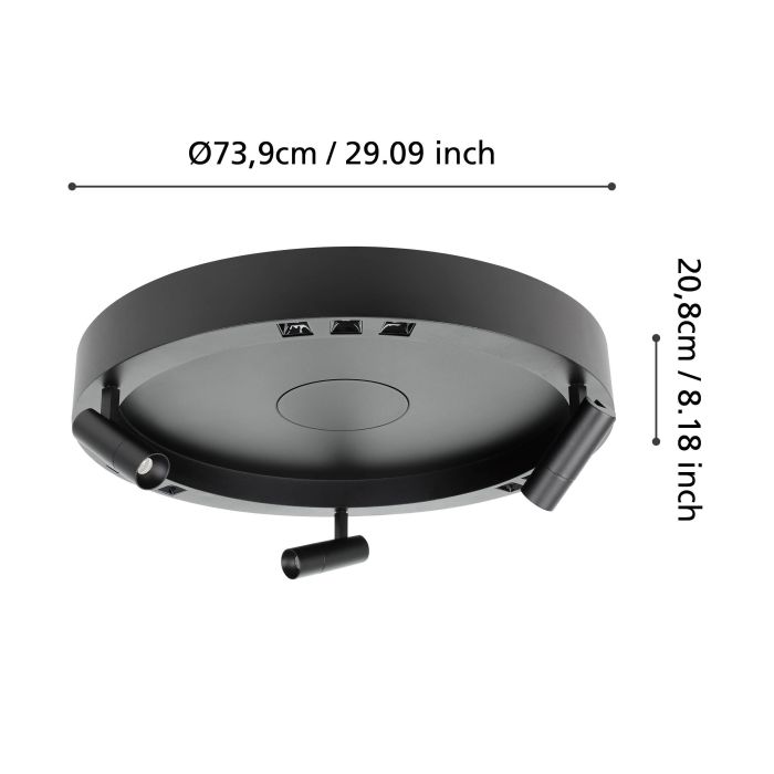 Laevalgusti BRUSCOLI-EG-390052, LED 3 x 8W, 3000K Valgusvoog: 1440;1920lm, Metall, Must, Kõrgus 20 cm, Diametter 60 cm Hämardatav; IP20