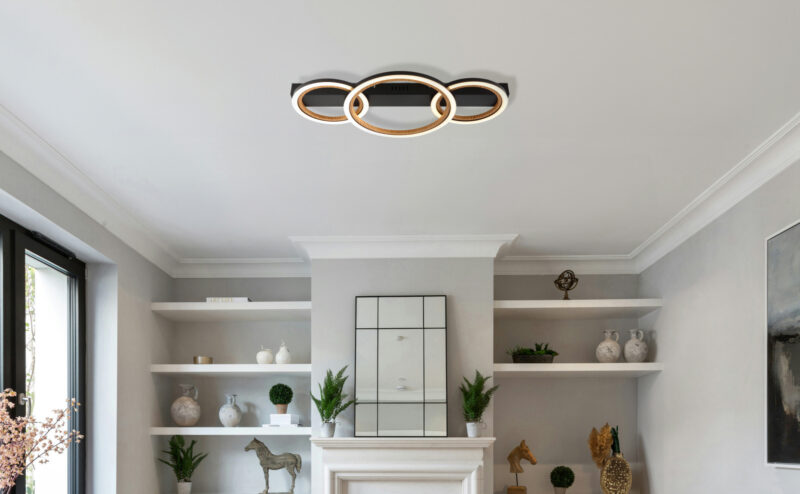 Laelamp LED DAKARI I-GL-67356D1, GLOBO, Austria, LED 40W, Värvustemperatuur 3000K, Valgusvoog 4750lm, Kõrgus 7cm, Laius 30cm, Sügavus 58cm, IP20, Metall, Must, Puit. Tarneaeg 14-21 päeva.