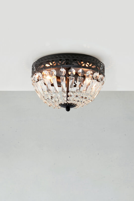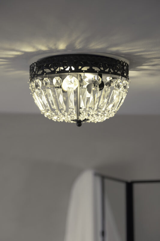 Laelamp ETIENNE-MS-108598, 2 pirni E14 40W, komplekt ei sisalda pirni, , Metall, Kristall, Must, Läbipaistev, Kõrgus 17 cm, Laius 25 cm, Sügavus 25 cm, IP21
