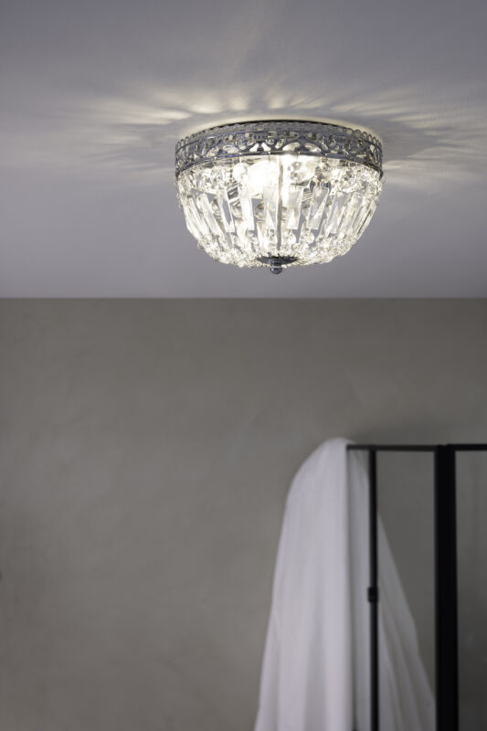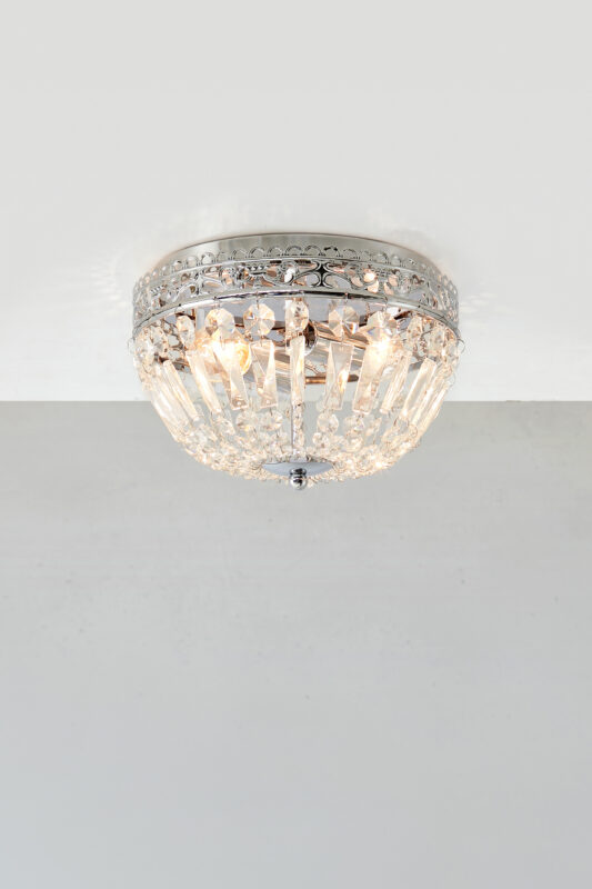 Laelamp ETIENNE-MS-108599, 2 pirni E14 40W, komplekt ei sisalda pirni, , Metall, Klaas, Kroom, Läbipaistev, Kõrgus 17 cm, Laius 25 cm, Sügavus 25 cm, IP21