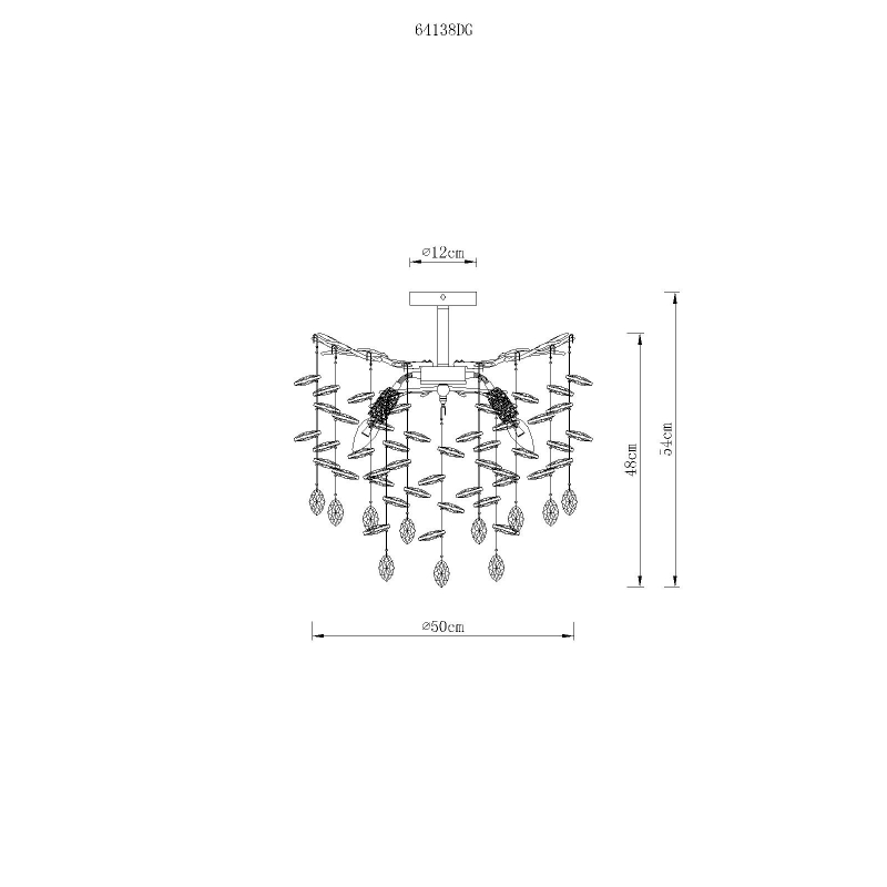 Laelamp QUEENA-GL-64138DG, Austria, Metallist kuldsed värvid matt, klaaskristallid merevaigukollane, läbipaistev, ø: 500 mm, K: 560 mm, 6x E14 40W 230V (ei ole komplektis).