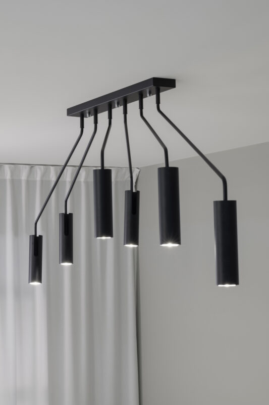Laelamp RAMUS-MS-108508, 6 pirni GU10 25W, komplekt ei sisalda pirni, , Metall, Metall, Must, Kõrgus 60 cm, Laius 192 cm, IP20