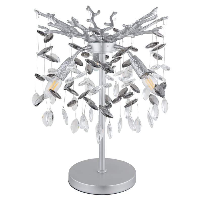Laualamp QUEENA-GL-64138TS, Austria, Hõbedane matt, suitsukarva klaaskristallid, läbipaistev, kaabel PVC, klahvlüliti kaablil, ø: 360 mm, K: 500 mm, kaabli pikkus 1200 mm, 3x E14 40W 230V (ei ole komplektis). Tarneaeg 14-21 päeva.