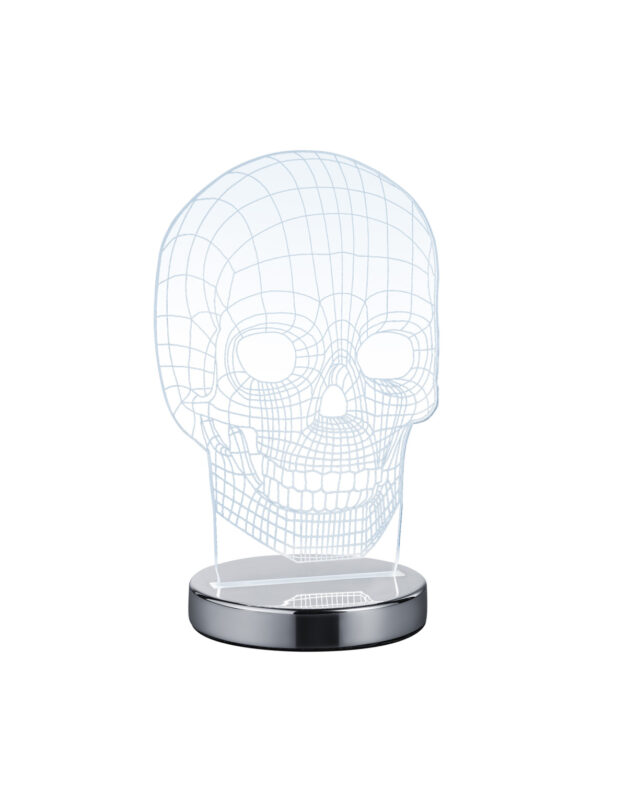 Laualamp, lauavalgusti SKULL, Kroom, 1 pirn: 1x SMD LED, 7W · 1x 600lm, 3000+4000+6500K, Materijal – Metall. Kõrgus 21cm, IP20