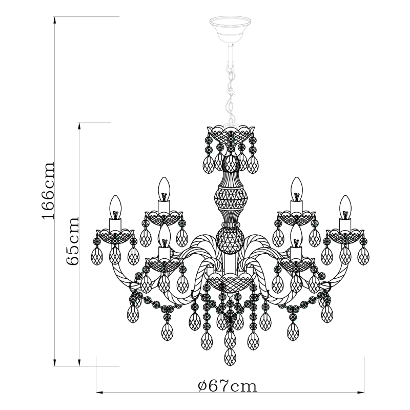 Lühtrid Cuimbra I, Kroom, Läbipaistev valge, 6 pirni E14, 40W, Materijal – Metall, akrüülkristall. Kõrgus 166cm, IP20. Seda elegantset traditsioonilist Cuimbra I seeria lühtrit iseloomustab vanaaegne disain ja kvaliteetne töötlus. Selle kroomitud ripplambi tootmiseks valiti akrüül. Rippuvad kristallid annavad sellele lambile stiilse välimuse. 67 cm läbimõõduga ja 1,66 meetri kõrgusega mudelit saab hõlpsasti integreerida oma eluruumi. Kuus kumeratele õladele paigaldatud E14 pistikupesa pakuvad Sulle võimalust kasutada mis tahes valgusallikat (max 40W). Soovitame LED-pirne nende vastupidavuse ja energiasäästu tõttu. Seda klassikalist lühtrit saab väga hästi kombineerida teiste sama sarja toodetega.