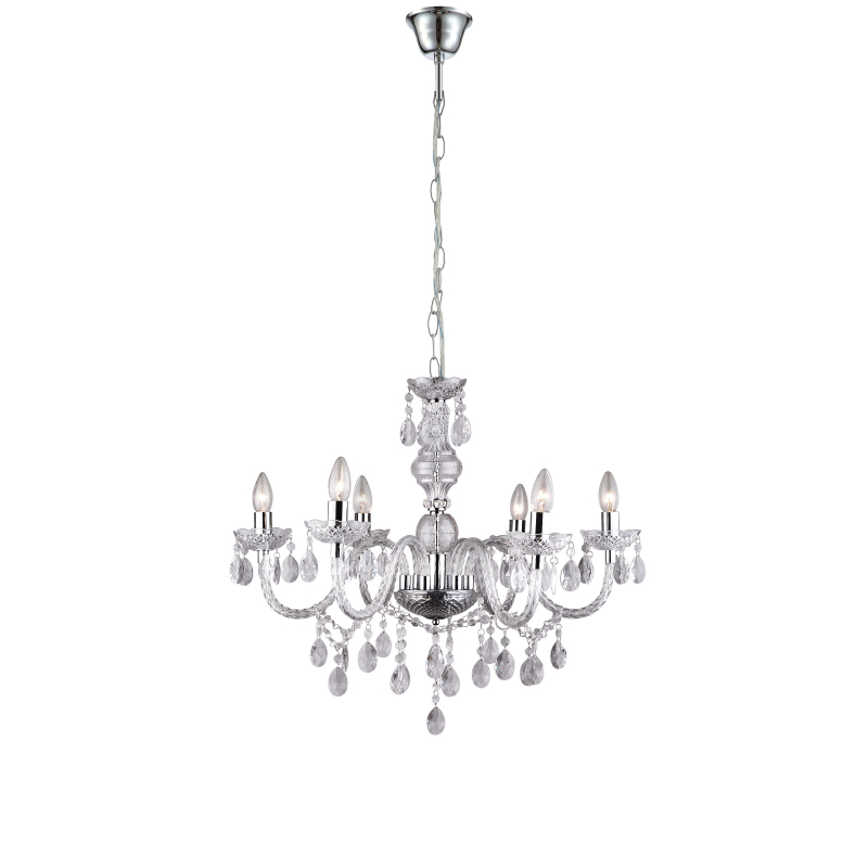 Lühtrid Cuimbra I, Kroom, Läbipaistev valge, 6 pirni E14, 40W, Materijal – Metall, akrüülkristall. Kõrgus 166cm, IP20