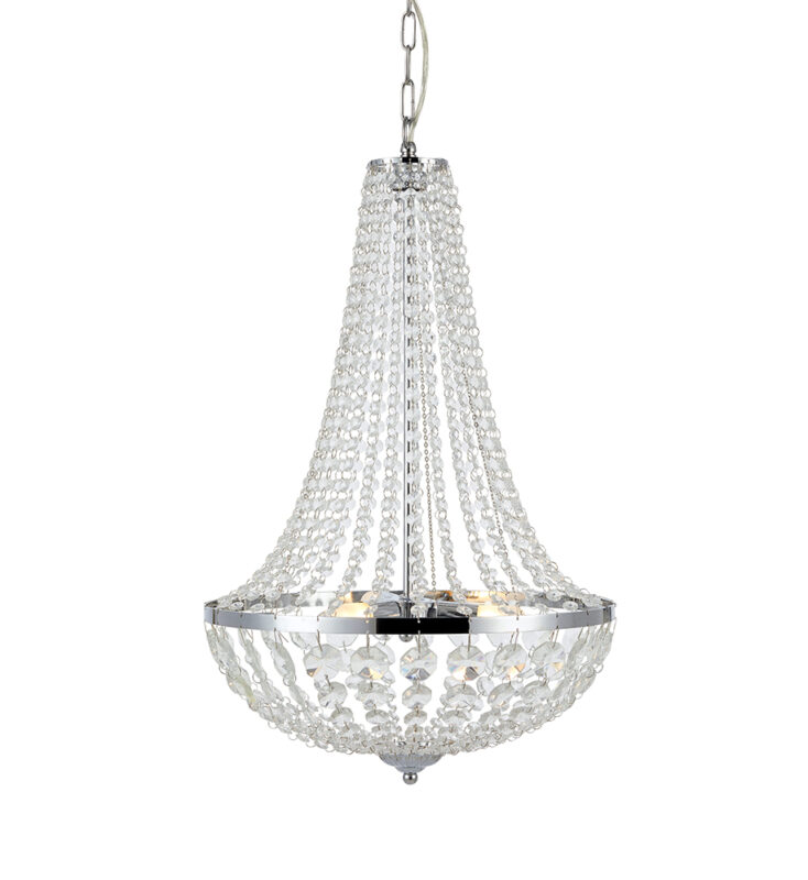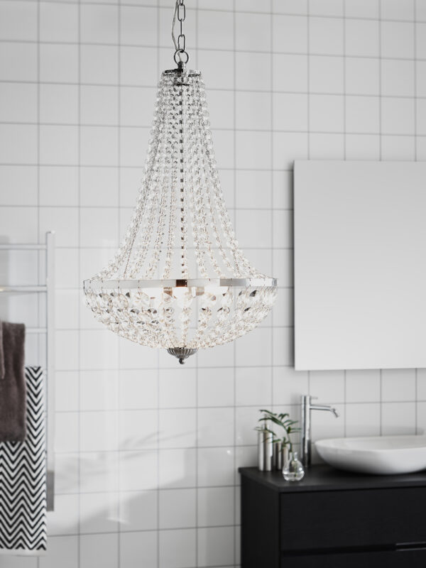 Lühter GRÄNSÖ-MS-107551, 3 pirni G9 20W, komplekt ei sisalda pirni, Metall, Kristall, Kroom, Läbipaistev, Kõrgus 60 cm, Laius 40 cm, Sügavus 40 cm, IP44. Tarneaeg kuni 21 pv.
