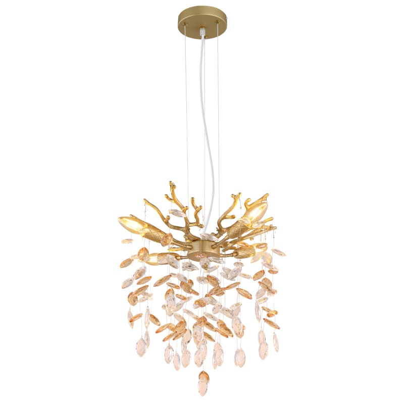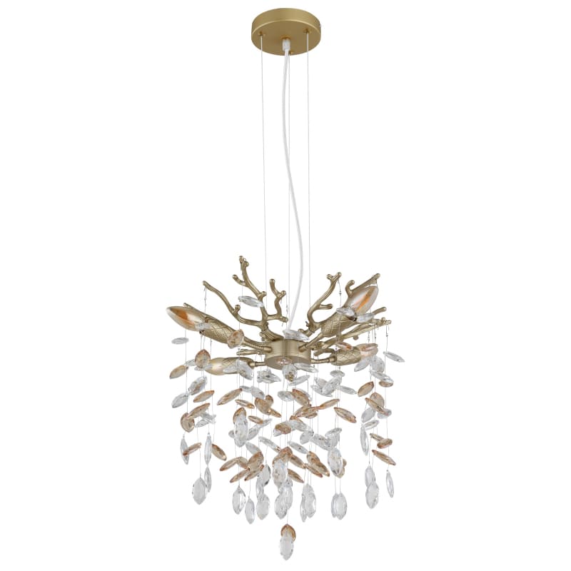 Lühter QUEENA-GL-64138HG, Austria, Metallist kuldsed värvid matt, klaaskristallid merevaigukollane, läbipaistev, kõrgus vähendatav, ø: 400 mm, K: 1200 mm, 4x E14 40W 230V (ei ole komplektis).