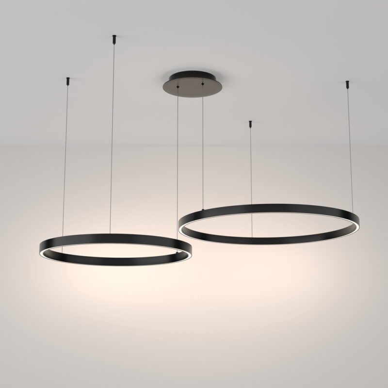 LED Lühter Rim Must. Maytoni, Saksamaa. LED 88W. Värvitemperatuur: 4000K. Valgusvoog 5200lm. Kaitseaste: IP 20. Pikkus: 120 cm. Kõrgus: 100 cm. Diameter 80 cm. Korpuse materjal: Alumiinium. Värv: Must. Mudel on vormitud metallrõngana. Sarja esindavad erinevas suuruses valgustid 3 värvitoonis: valge, must ja messing. LED valgusallikad.