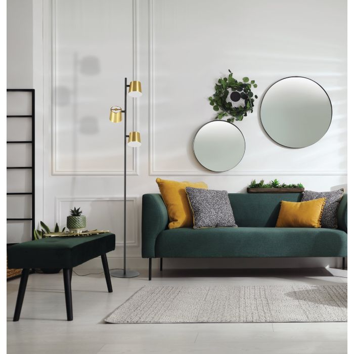 Põrandavalgusti ALTAMIRA-EG-39987, 3 pirni GU10-LED 4,6W, komplekt ei sisalda pirni, Metall, Klaas, Must, Messing, Valge, Kõrgus 158,5 cm, Pikkus 26,5 cm, Laius 24 cm; IP20