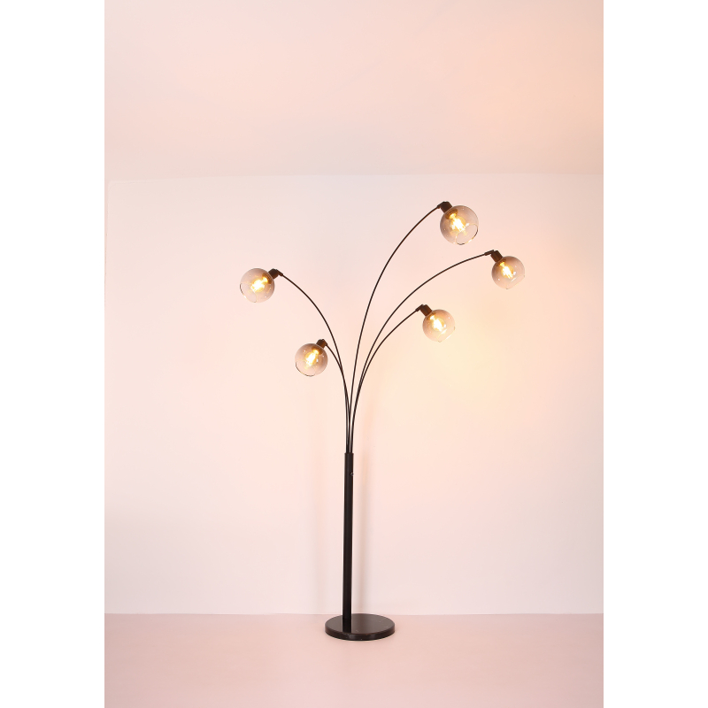 Põrandalamp Seymour-GL-58228NBS 5 pirni E27 40W komplekt ei sisalda pirni; Metall, Klaas, Must, Suitsuklaas, IP20, Kõrgus 208cm