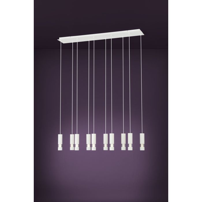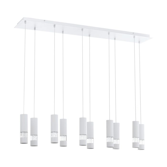 Rippvalgusti BERNABETA-EG-39703, 10 pirni GU10-LED 4,6W, komplekt ei sisalda pirni, Metall, Klaas, Valge, Läbipaistev, Kõrgus 150 cm, Pikkus 117 cm, Laius 20 cm; IP20