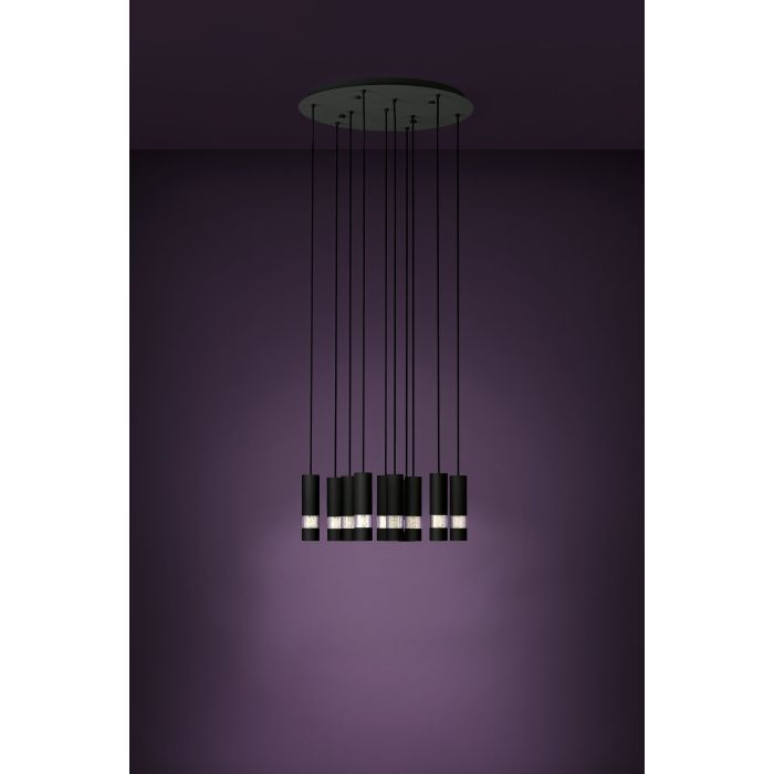 Rippvalgusti BERNABETA-EG-39708, 10 pirni GU10-LED 4,6W, komplekt ei sisalda pirni, Metall, Klaas, Must, Läbipaistev, Kõrgus 150 cm, Diameeter 58 cm IP20