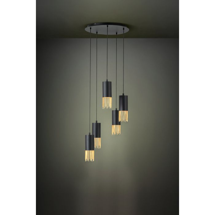 Rippvalgusti COUNUZULUS-EG-39661, 5 pirni E27 40W, komplekt ei sisalda pirni, Metall, Must, Messing, Kõrgus 150 cm, Diameeter 50 cm IP20