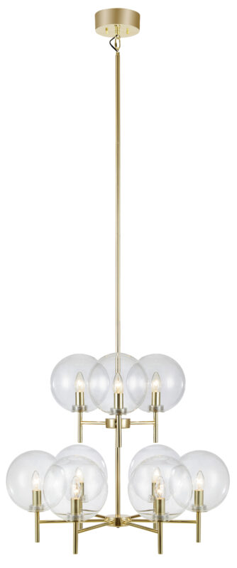 Ripplamp CROWN-MS-107920, 9 pirni E14 20W, komplekt ei sisalda pirni, Metall, Klaas, Messing, Läbipaistev, Kõrgus 162 cm, Laius 71,5 cm, IP20. Tarneaeg kuni 21 pv.