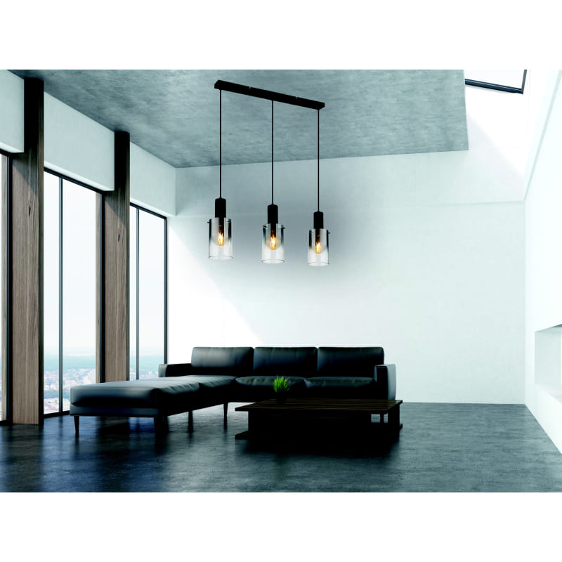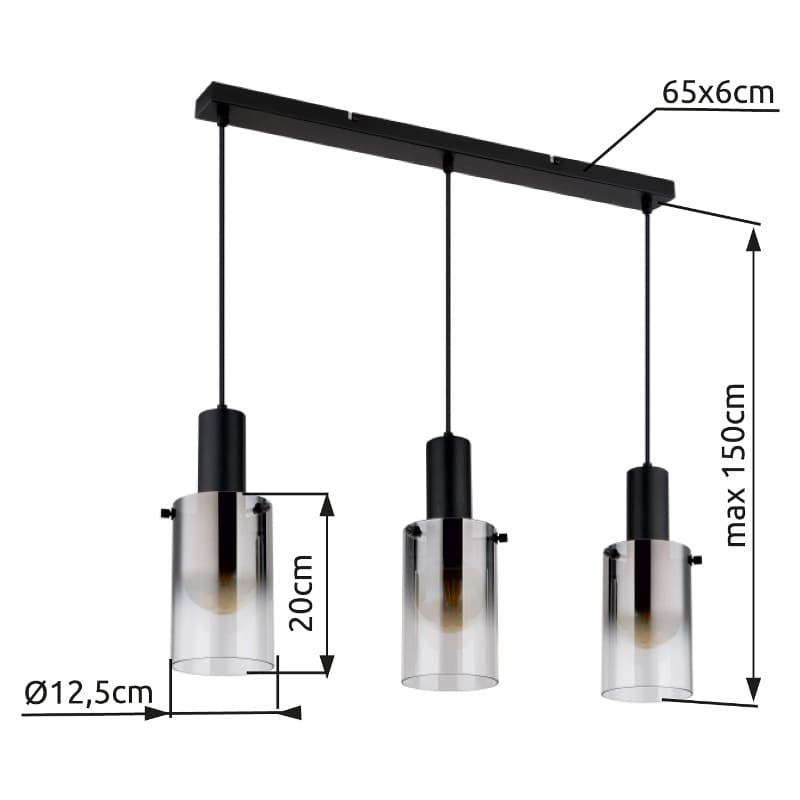 Ripplamp FLORENTINA-GL-15907-3H, GLOBO, Austria, 3 pirni E27 40W, Sügavus 72,5cm, Kõrgus 150 cm, IP20, Metall, Must, Suitsu
