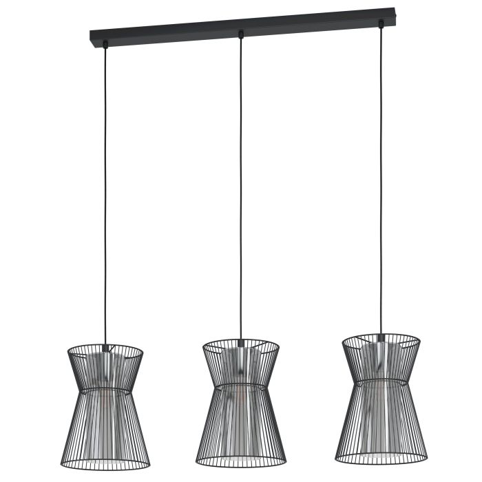 Rippvalgusti MASETA-EG-99634, 3 pirni E27 40W, komplekt ei sisalda pirni, Metall, Klaas, Must, Must, Kõrgus 110 cm, Pikkus 93 cm, Laius 22,5 cm; IP20