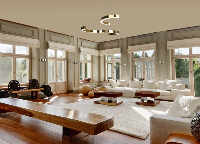 Rippvalgusti Max-Lotus-P0394D. Lotuse perekonna põhikuju on läikiv kuldne kaar, mille põhja on sisseehitatud valgusallikas. Lambi vorm toob silme ette elegantsete, kuid ilmekate ehete komplekti. Perekond koosneb kahest mudelist: ühekaarelisest seinavalgustist ja rippvalgustist, milles kolm kaarekuju annavad suurepärased võimalused igasuguseks paigutuseks. Lotus on oma ebatavalise kujuga klassikaline ja intrigeeriv valik. See näeb suurepärane välja Ameerika interjööris, traditsiooniliselt elegantne ja moodne. See täiendab suurepäraselt kujundust luksusliku ja hollywoodi regentsi stiilis, aga ka kümnendi kõige moekamate värvide taustal: aastatuhande roosa ja klassikaline sinine.