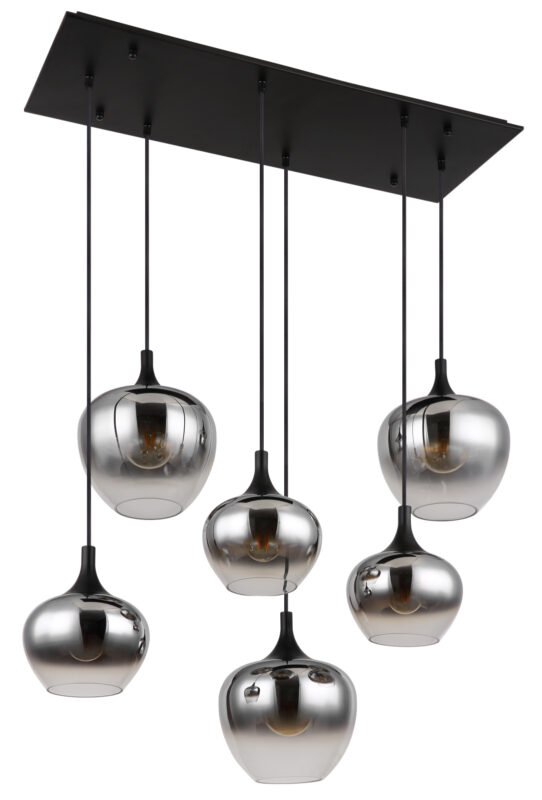 Ripplamp Maxy-GL-15548-6H 6 pirni E27 40W komplekt ei sisalda pirni; Metall, Klaas, Must, Suitsuklaas, IP20, Kõrgus 120cm