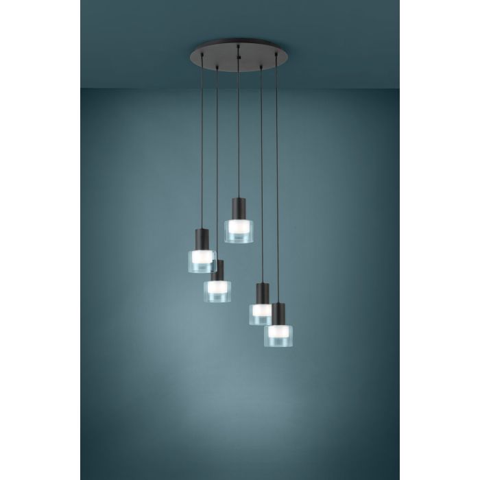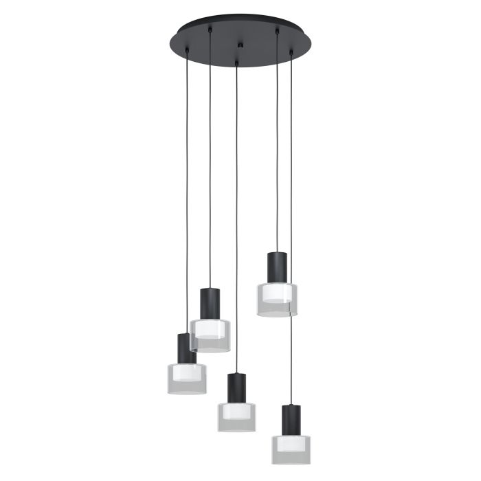 Rippvalgusti MOLINEROS-EG-39727, 5 pirni GU10-LED 4,6W, komplekt ei sisalda pirni, Metall, Klaas, Plastik, Must, Valge, Kõrgus 150 cm, Diameeter 53 cm IP20
