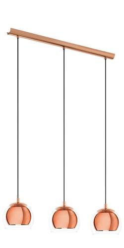 Rippvalgusti ROCAMAR-EG-94591, 3 pirni E27 40W, komplekt ei sisalda pirni, Metall, Klaas, Vask, Läbipaistev, Kõrgus 110 cm, Pikkus 78 cm, Laius 19 cm; IP20