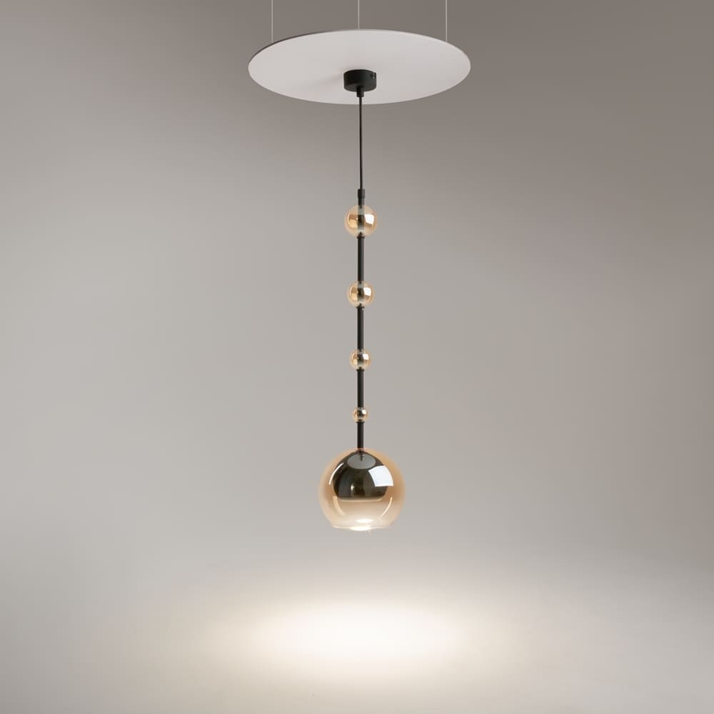 Ripplamp Ros-MAY-MOD227PL-01B, GU10X1, 28W, Kõrgus 362,5cm (Max), Diameeter 16cm, Merevaiku Klaas, Must Metall, IP 20